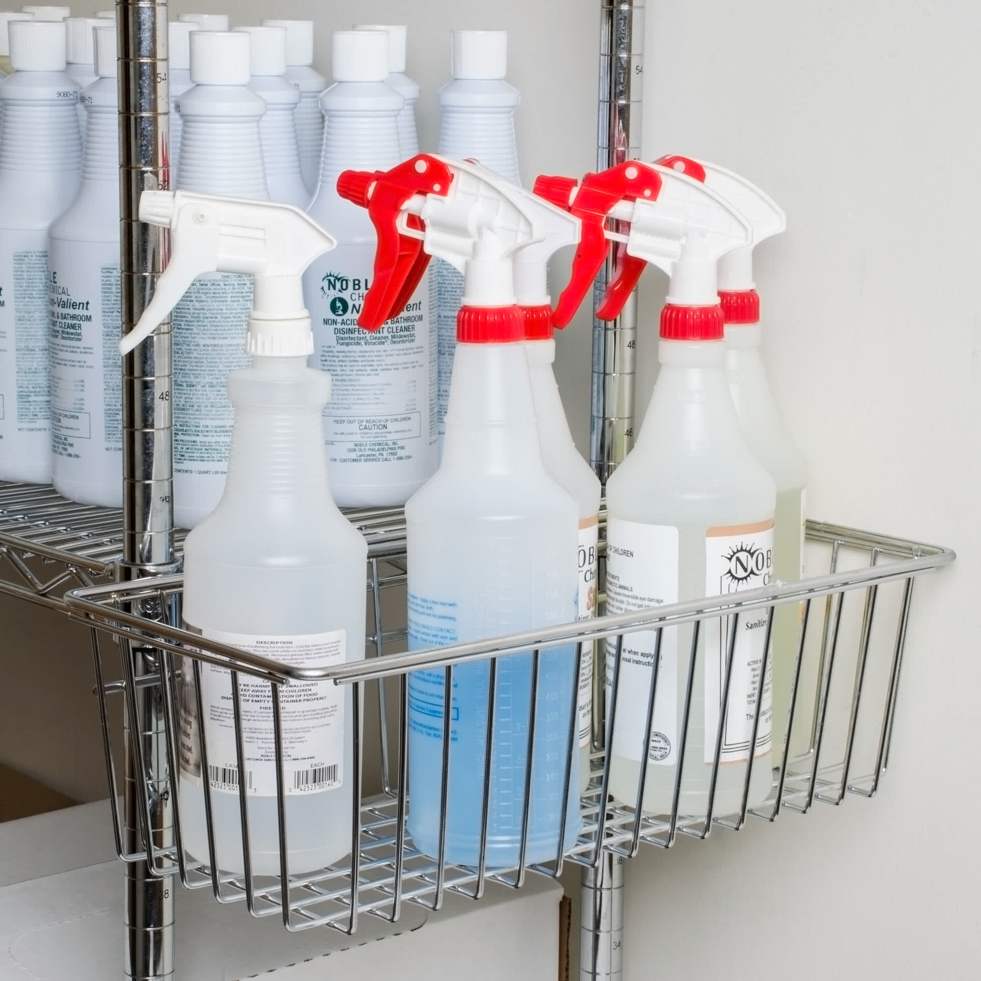Nuestras cestas de alambre cromado cuentan con un diseño frontal abierto que le permite reemplazar y quitar artículos rápidamente.