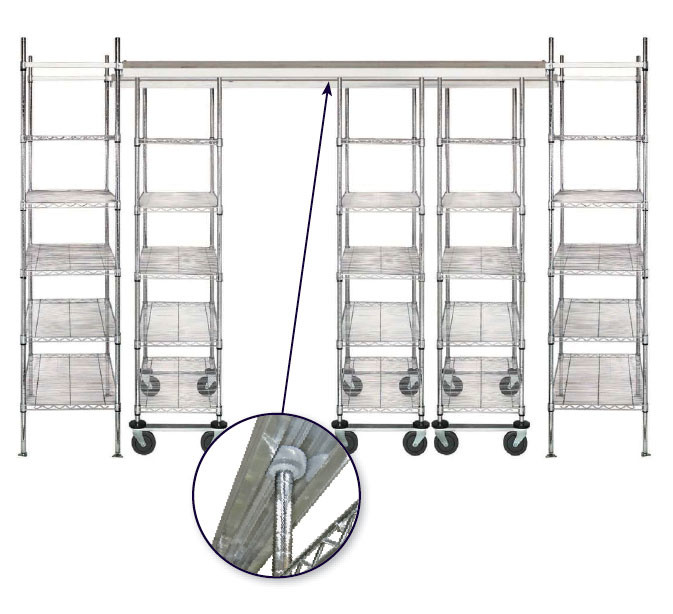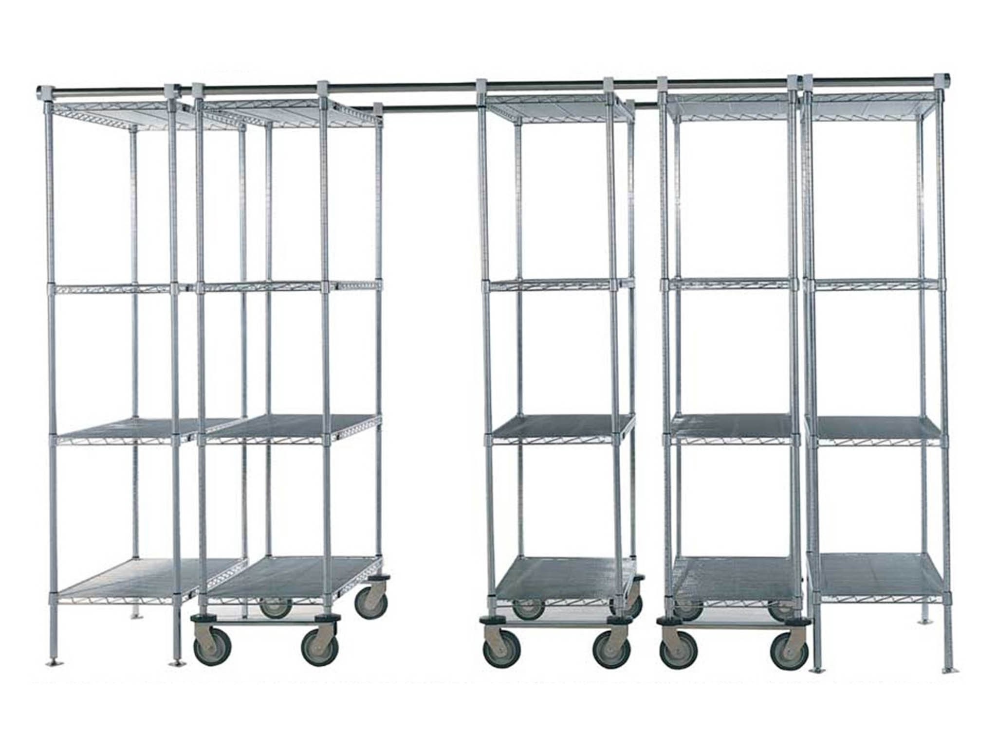 Varias dimensiones están disponibles para los estantes móviles deslizantes de alambre en vías y rieles para maximizar el uso del espacio.