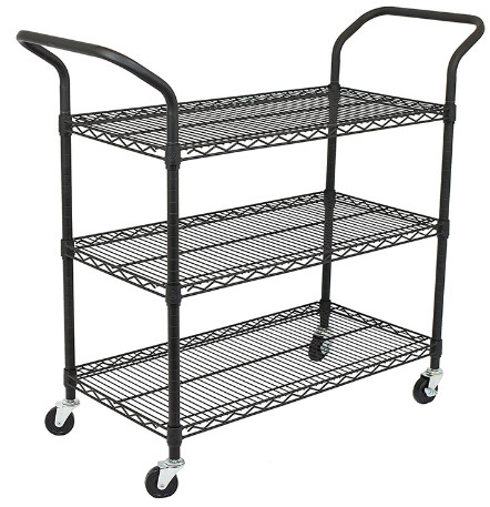 ESD Trolleys de servicio de alambre móvil negro para uso comercial