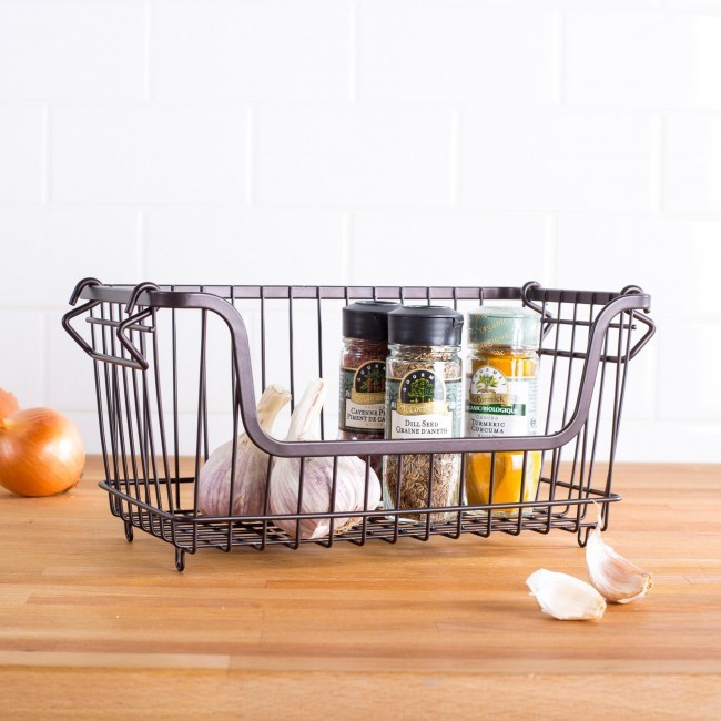 Estas cestas de alambre pueden funcionar con divisores para adaptarse a los requisitos de almacenamiento y los marcos apilables permiten colocar el máximo de cestas una encima de la otra