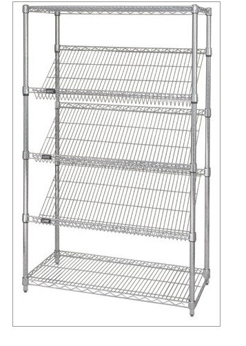 Crear la pantalla perfecta para los clientes, así como permitir un fácil acceso al producto mediante estantes de alambre inclinados.Mostrar más mercancía y organizar sus productos muestra mejor con la facilidad de estanterías inclinadasPerfecto para exhibiciones, panaderías, restaurantes.