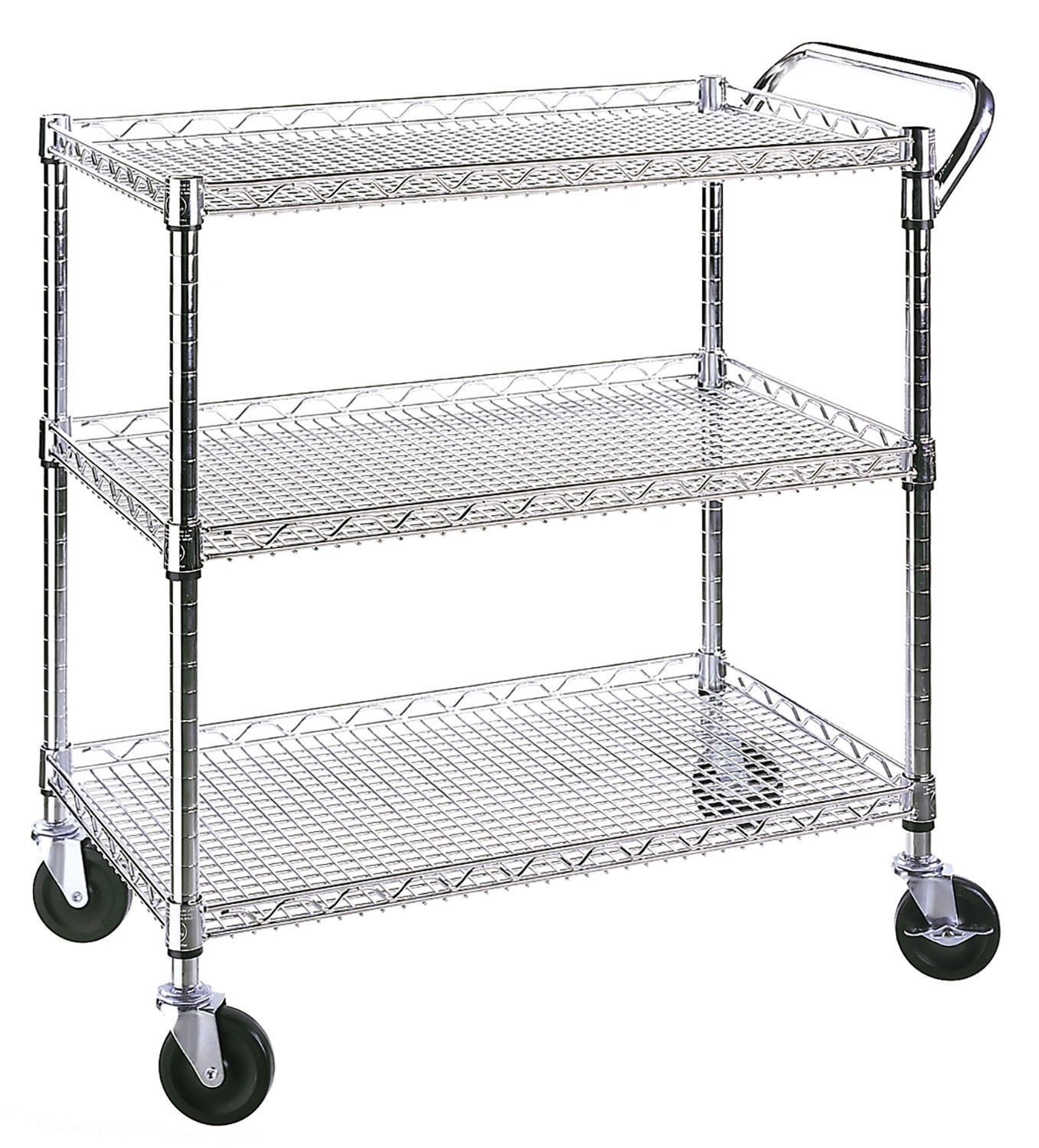 Transporte sus cosas de forma rápida y sencilla con este carro de alambre. Elija el carro adecuado para su restaurante, hogar, cocina, almacén o depósito. El carro incluye tres niveles de almacenamiento, cada uno ajustable en altura en incrementos de 1 pulgada. Un gran mango de acero redondeado proporciona un fácil control cuando está vacío o lleno. Construcción de alambre de acero de resistencia industrial para uso multiusos.