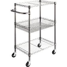 • Incluyedos estantes ajustables y una cesta con mango de tirón y cuatro ruedas giratorias de goma de 4 pulgadas para mayor maniobrabilidad.