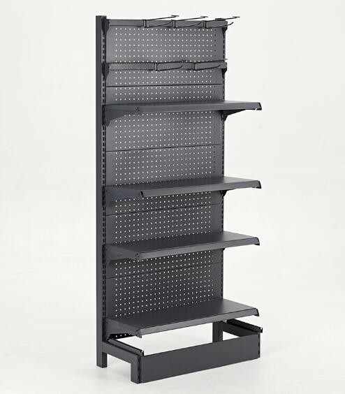 Expositores de supermercado con panel perforado negro de acceso rápido, cuatro niveles