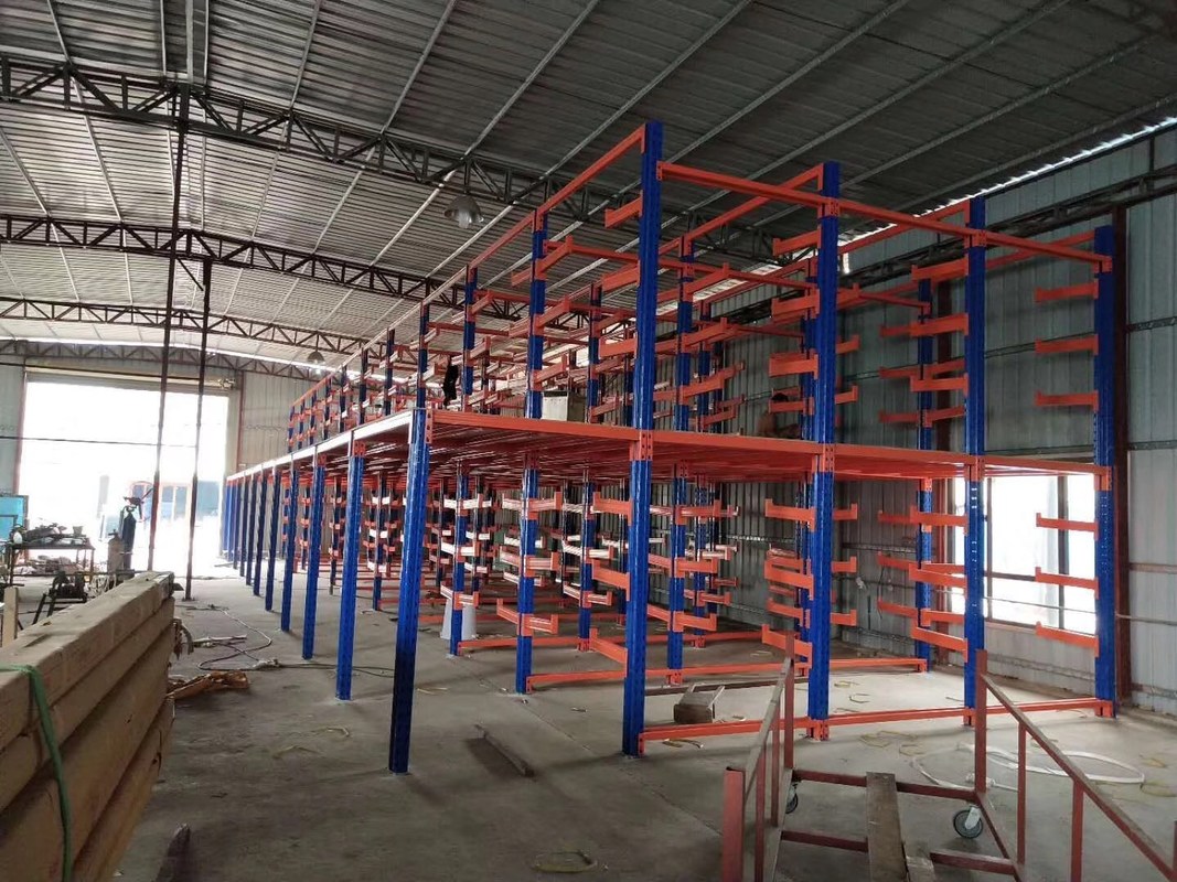 La estructura de acero industrial de voladizo se utiliza para el almacenamiento de cargas voluminosas, de gran tamaño y largas, como madera, cartón de yeso, vigas de acero y tuberías, alfombra de PVC. Sus componentes básicos incluyen:Columna vertical, Apoyo de base, brazos de voladizo, barra horizontal, barra diagonal.