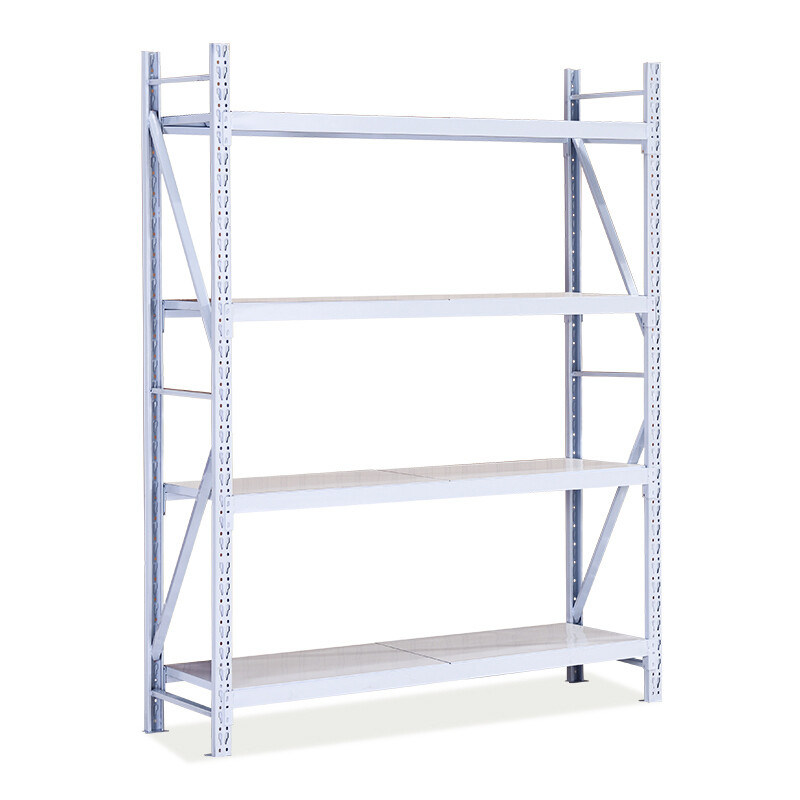 Accesorios textiles estanterías blancas de largo alcance, almacenamiento de almacén estanterías de acero mediano