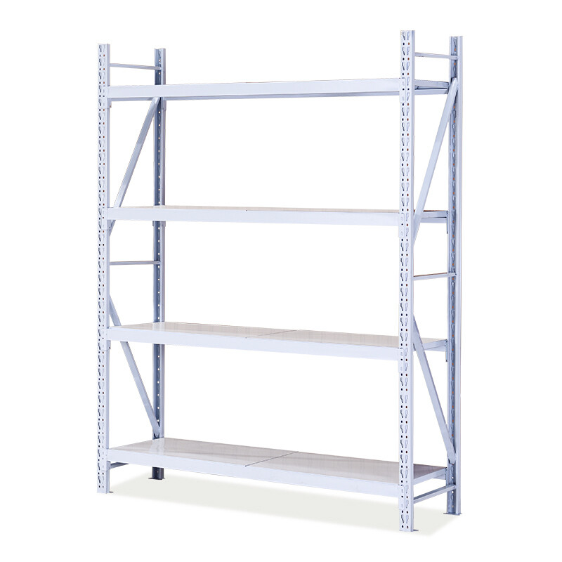 Las estanterías de amplio alcance consisten principalmente en vigas de paso, marcos, paneles de acero y una base..Principalmente para mercancías de gran capacidad de carga con viga transversal larga.