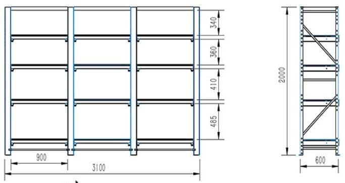 1. El tamaño total de las estanterías de molde: longitud * anchura * altura (por ejemplo, L3100*W600*H2000)
