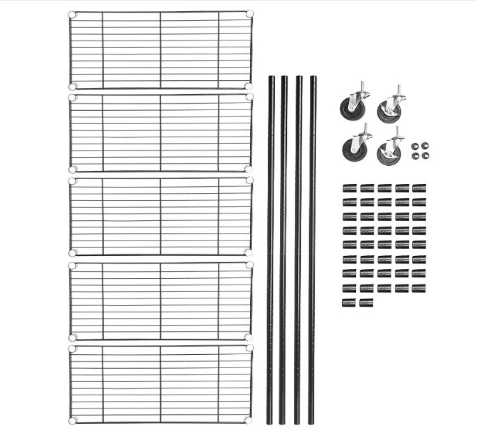 Unidad de almacenamiento de estanterías de 5 estanterías en el bastidor de alambre del organizador de metal de las ruedas de 4 '