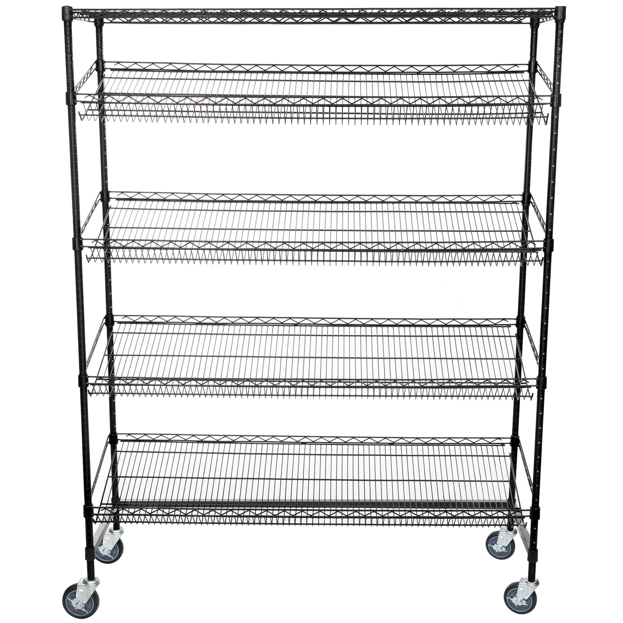 Con (4) estantes inclinados de 18" x 60", el estante es perfecto para exhibir una amplia gama de productos en las áreas delanteras de la casa.con capacidad para hasta 400 lbAdemás, cada uno de ellos es ajustable a lo largo de los postes de 64 pulgadas de altura del bastidor para apoyar su selección de productos en constante evolución.