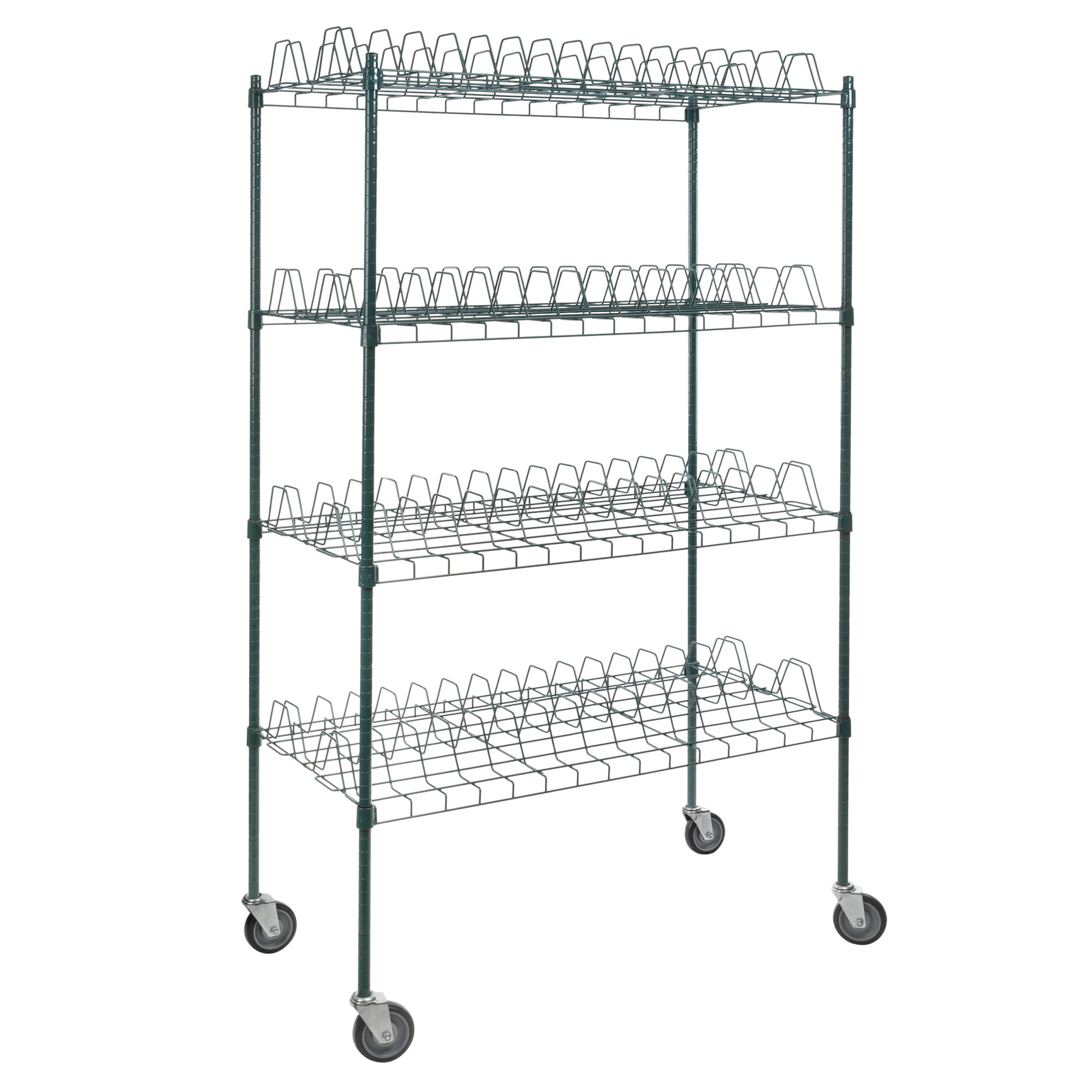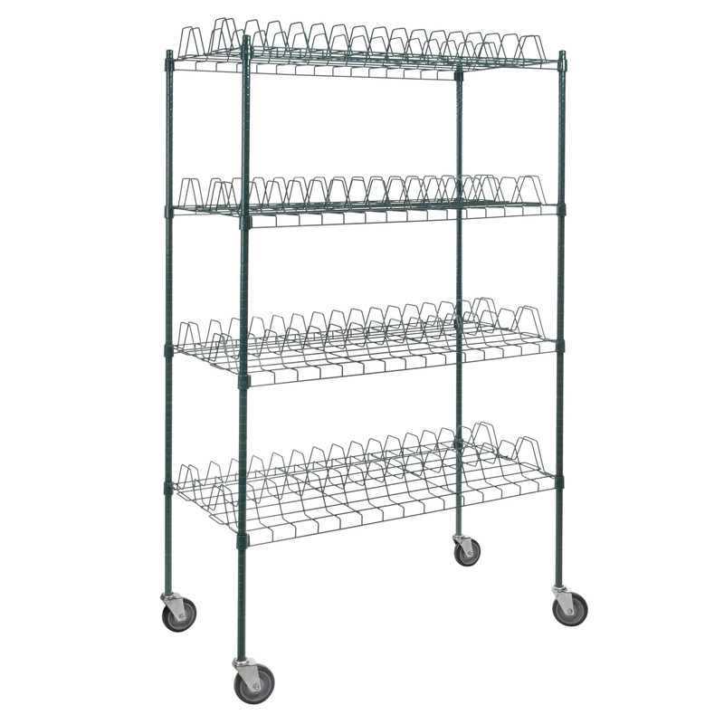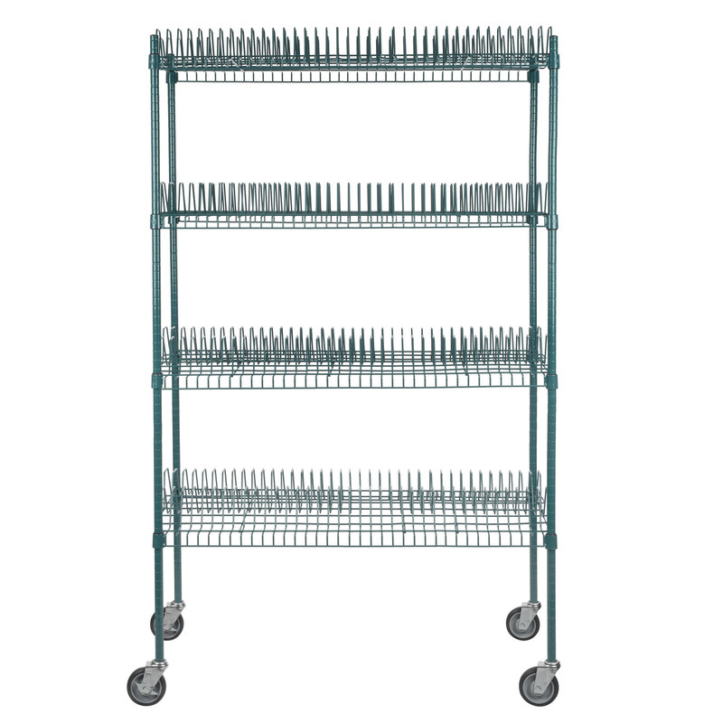 El diseño abierto de los estantes facilita el flujo de aire entre y alrededor de los productos para maximizar el tiempo de secado y evitar la acumulación de agua.