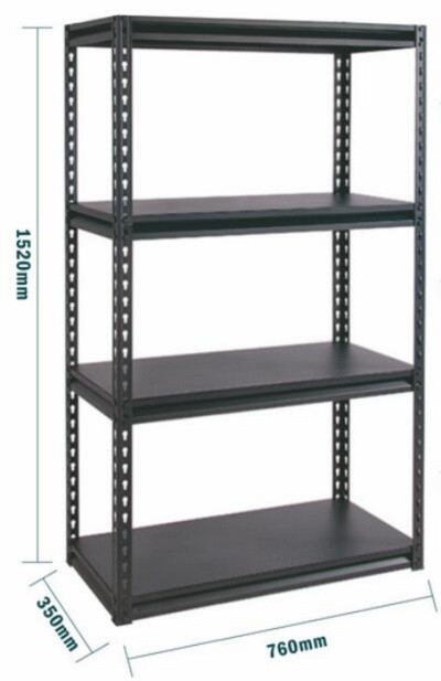 4 estanterías Agujero de guardia Estante de almacenamiento de larga duración Negro 760*350*1520H